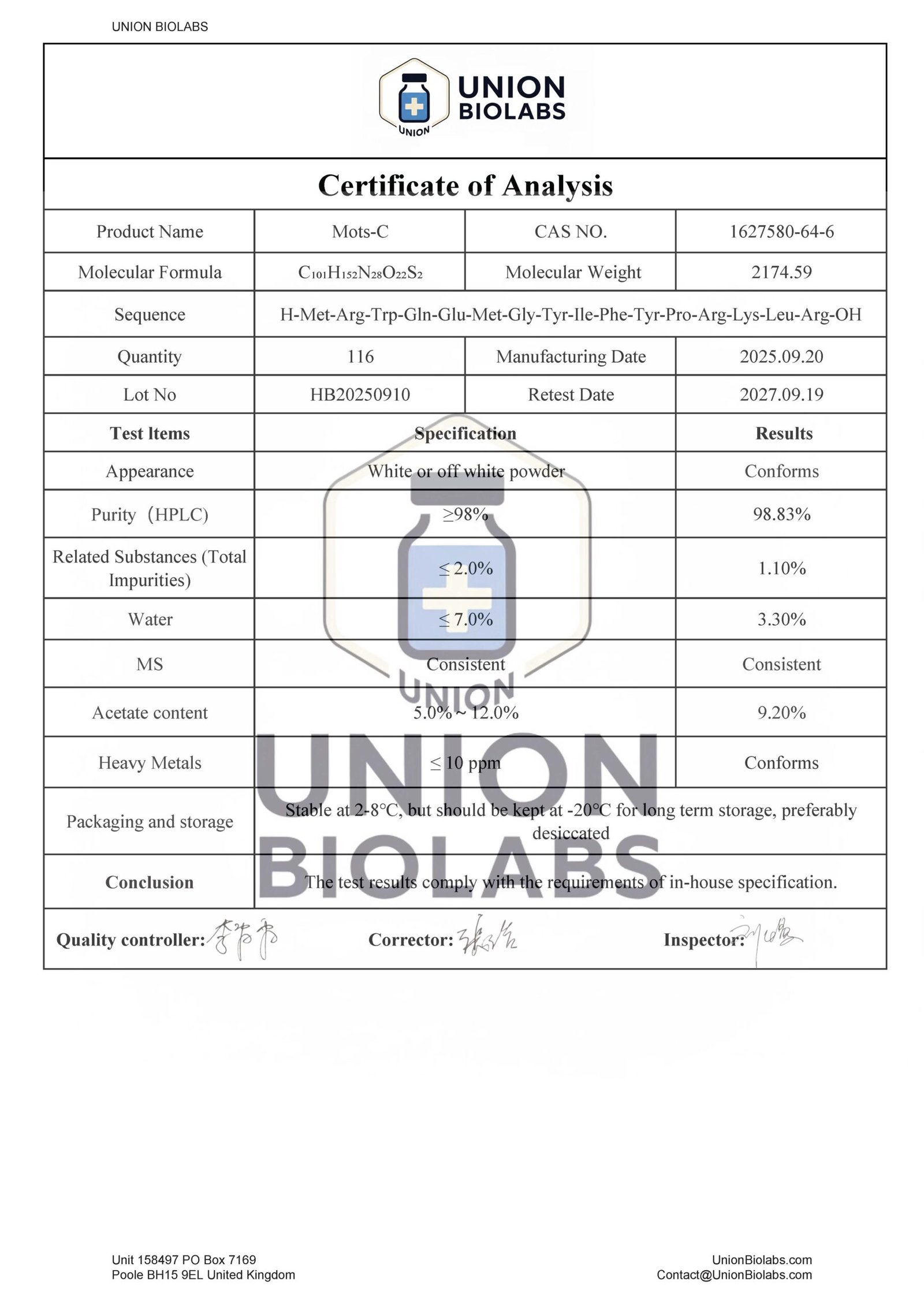 - Content: MOTS-c (lyophilised)