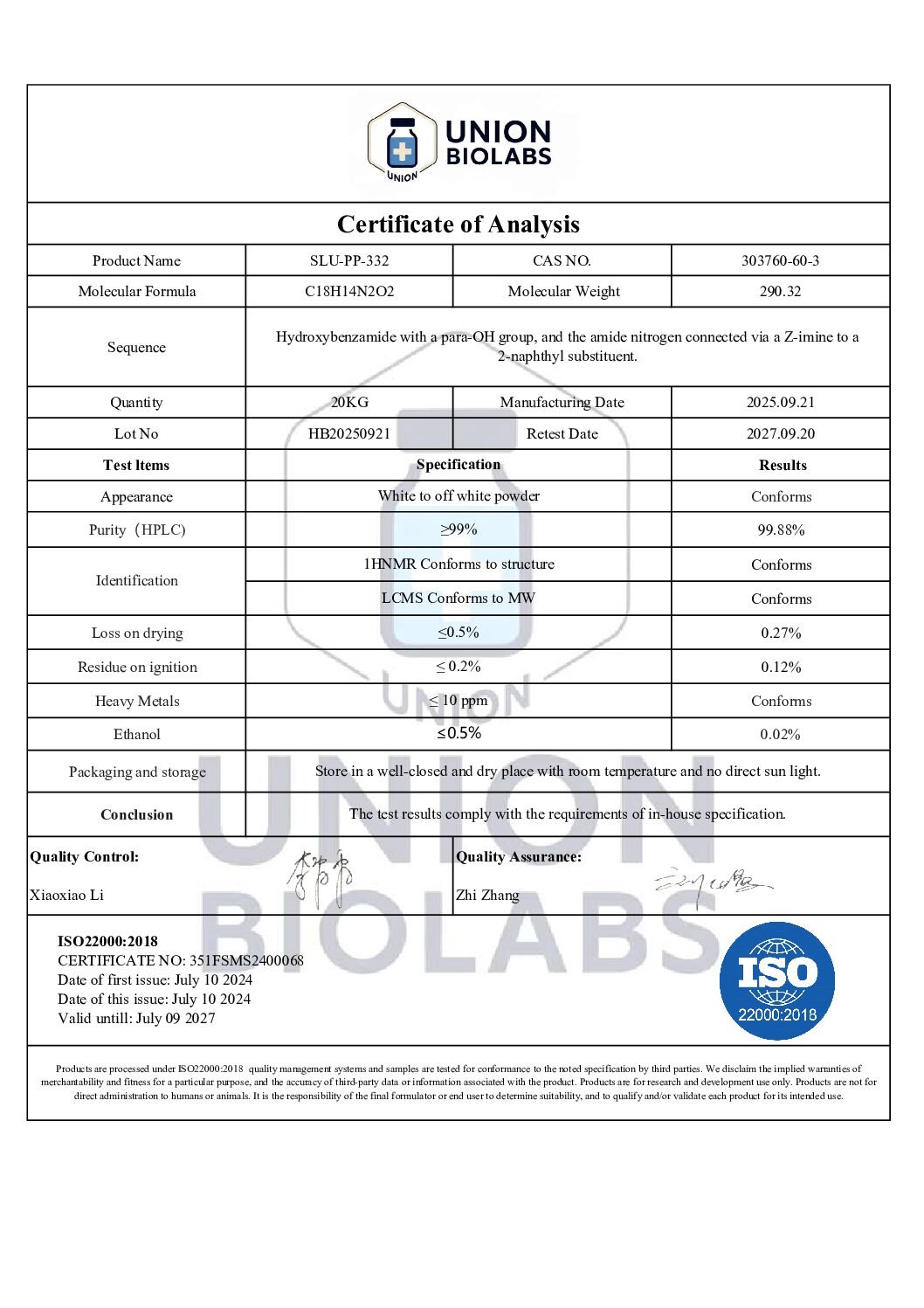 Union BioLabs SLU-PP-332 is a high-purity research compound. It is supplied in precise 250 mcg vegan capsules, allowing for controlled and repeatable measurement. Therefore, it is well suited for advanced laboratory environments.